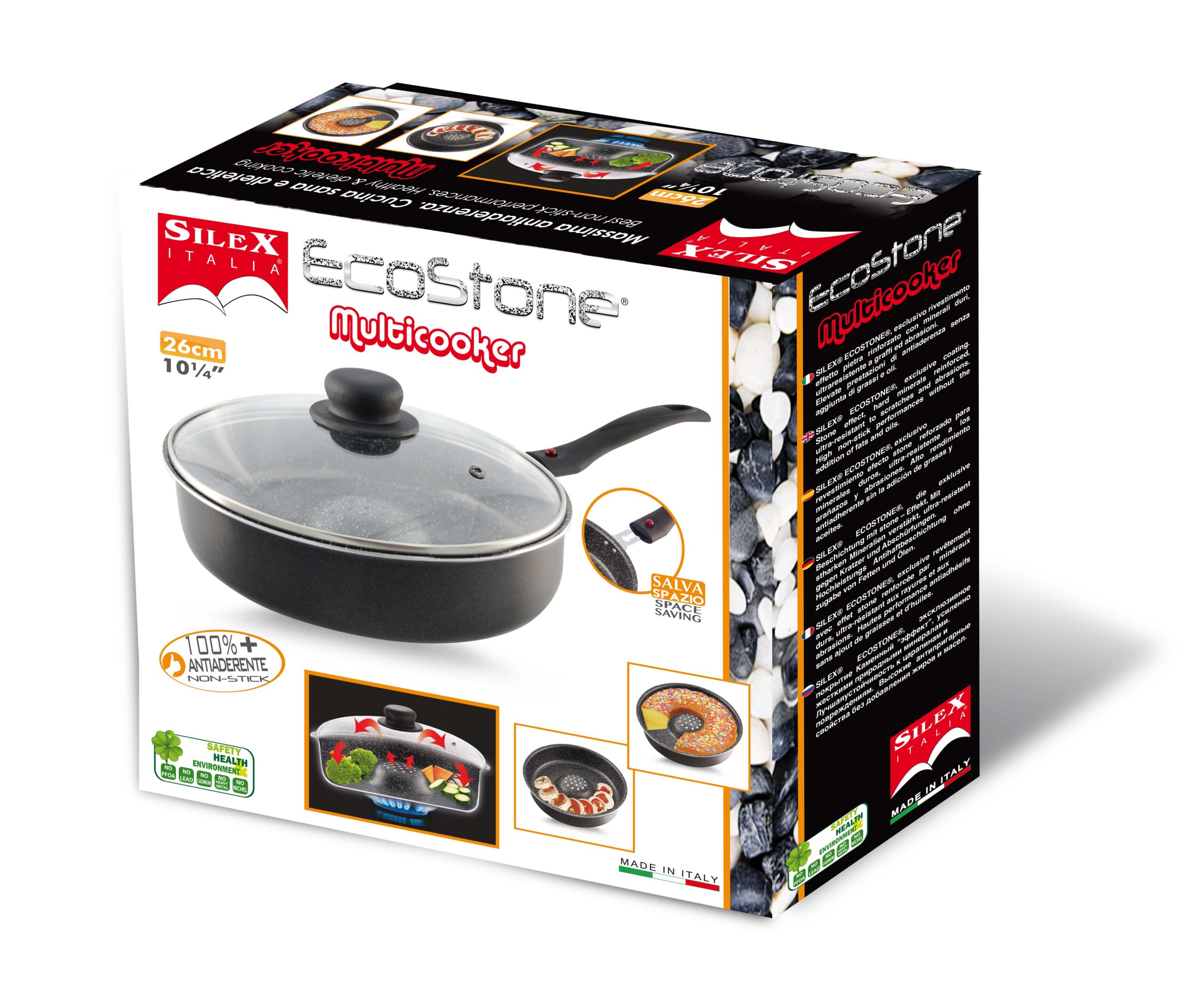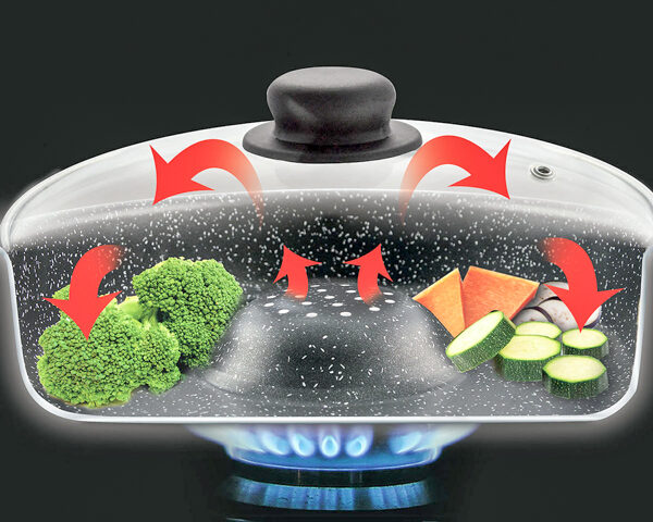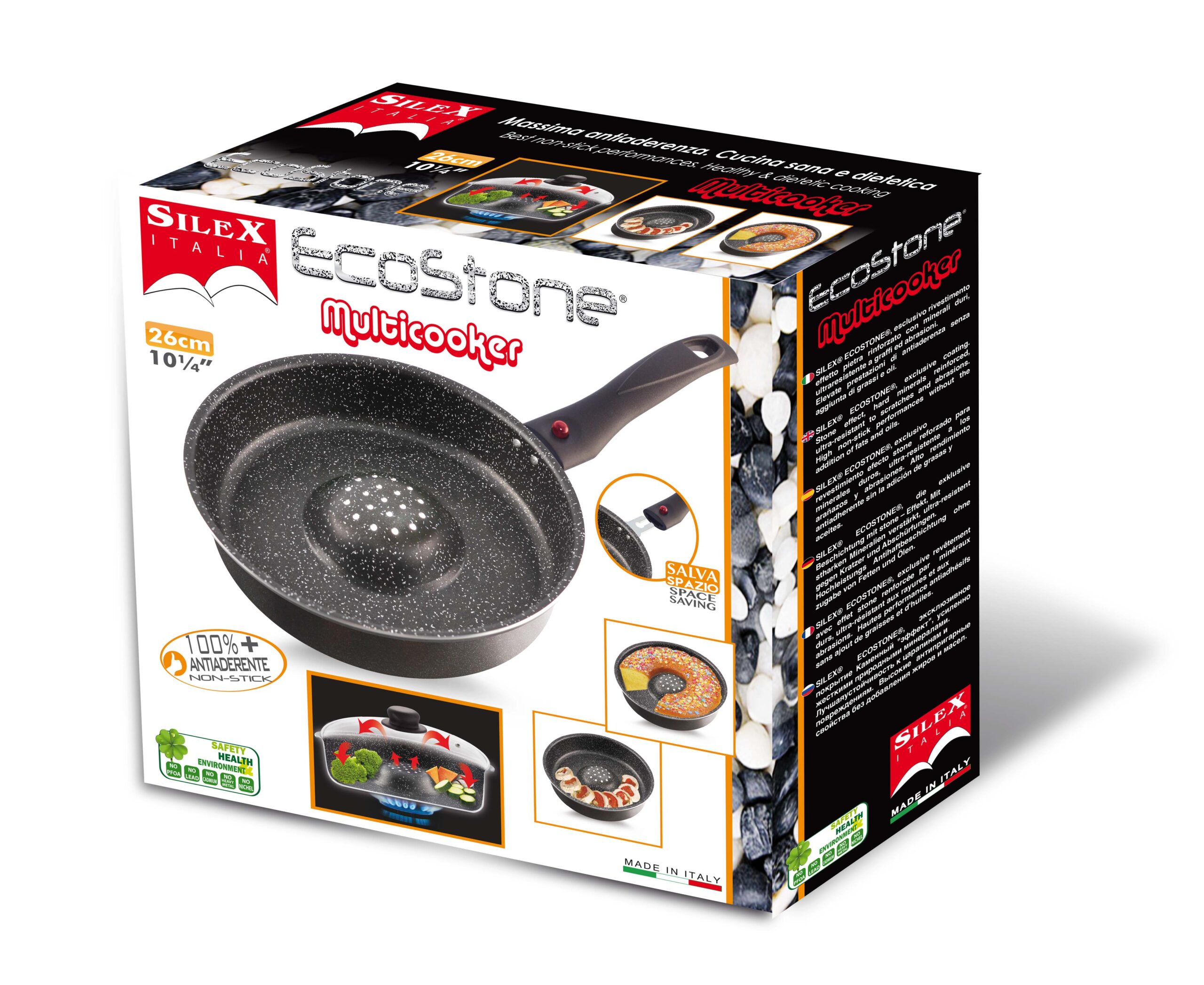 Dotata dell’esclusivo rivestimento in “Stone Effect”, rinforzati con minerali duri. Massima resistenza a graffi e abrasioni. Elevate prestazioni di antiaderenza senza aggiunta di grassi e oli.